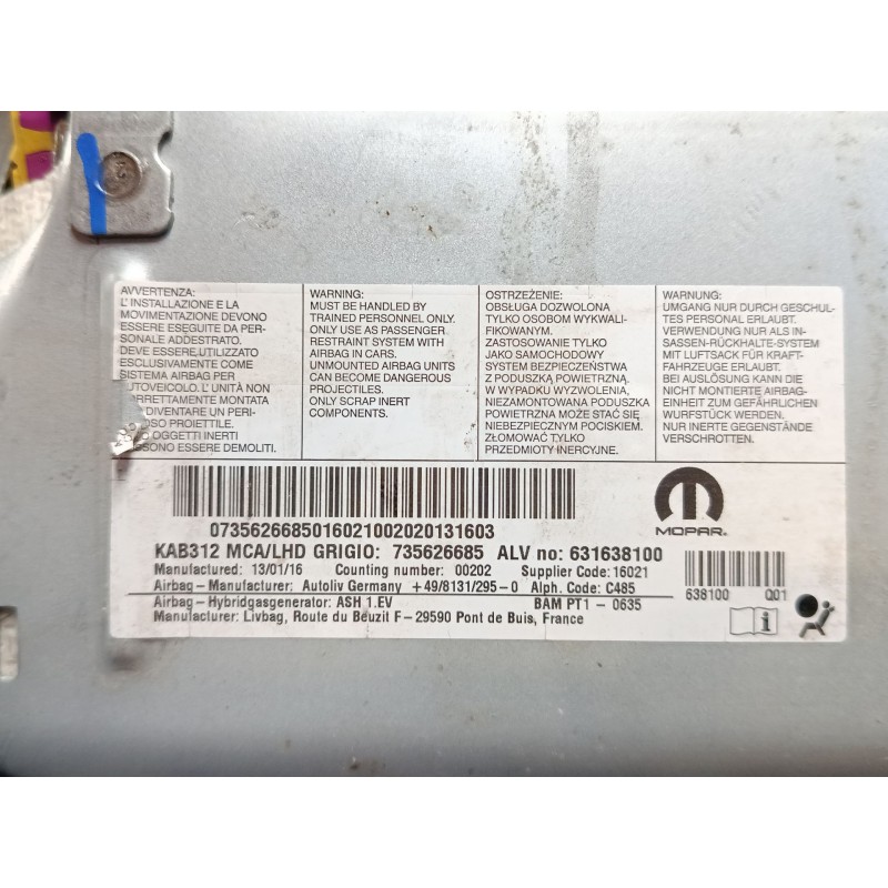 Recambio de airbag de rodilla para fiat 500 (312_) 1.2 (312axa1a) referencia OEM IAM 735626685 631638100